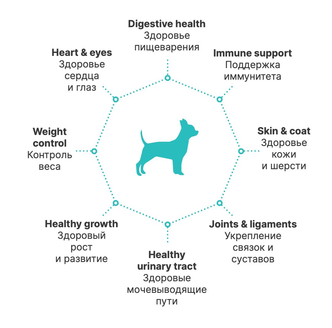 | Особые потребности | беззерновой / гипоаллергенный / для активных животных / для здоровья кожи и блеска шерсти / для здоровья костей и суставов / для снижения запаха стула / для ухода за ротовой полостью / при чувствительном пищеварении |