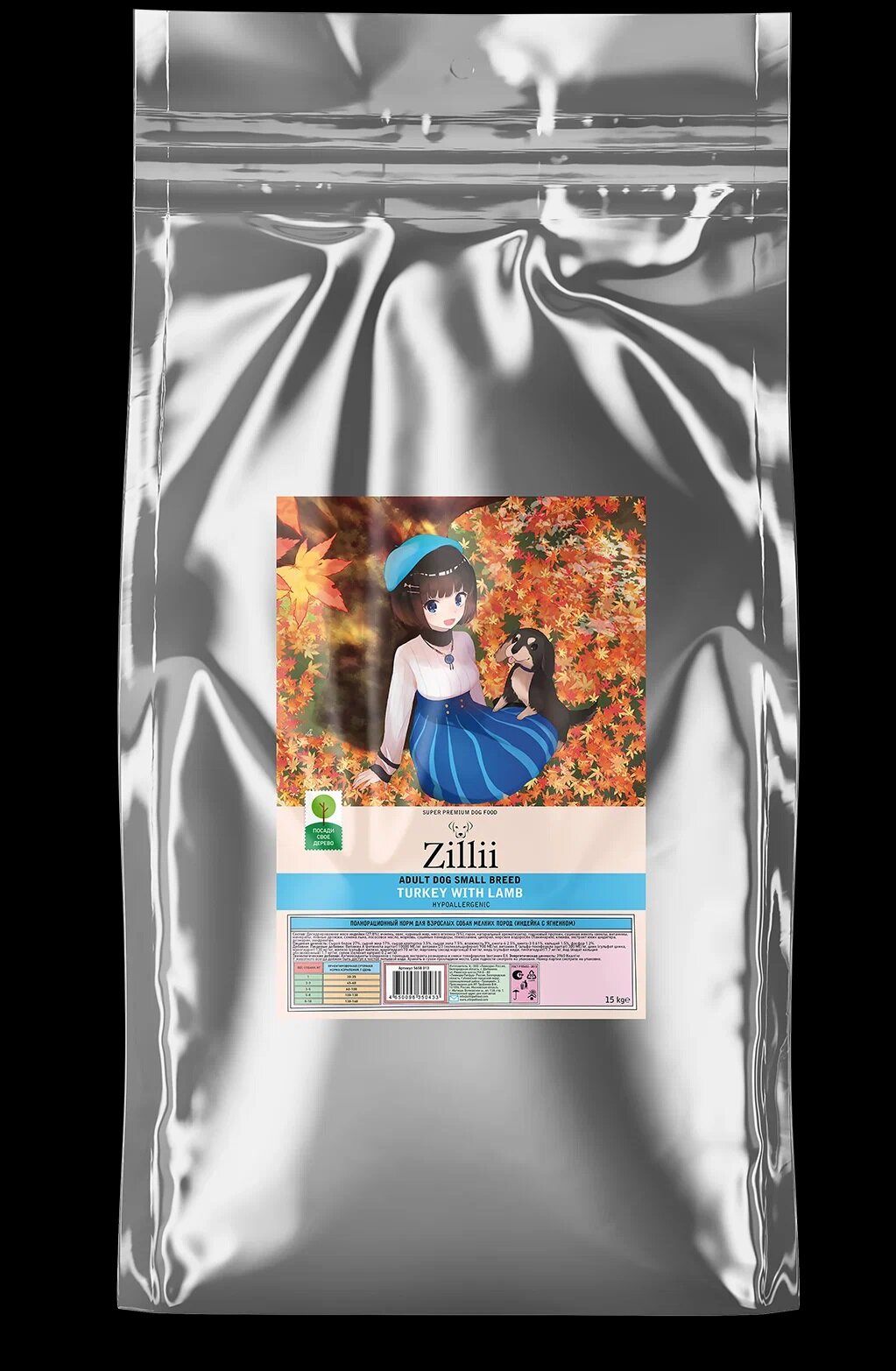 Корм сухой Zillii Adult Dog Small Breed для взрослых собак мелких пород Индейка с Ягненком, 15 кг