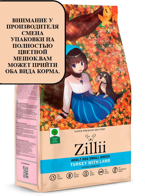 ZILLII ADULT DOG SMALL BREED TURKEY & LAMB для взрослых соб мал пород с индейкой и ягненком NEW 2 кг