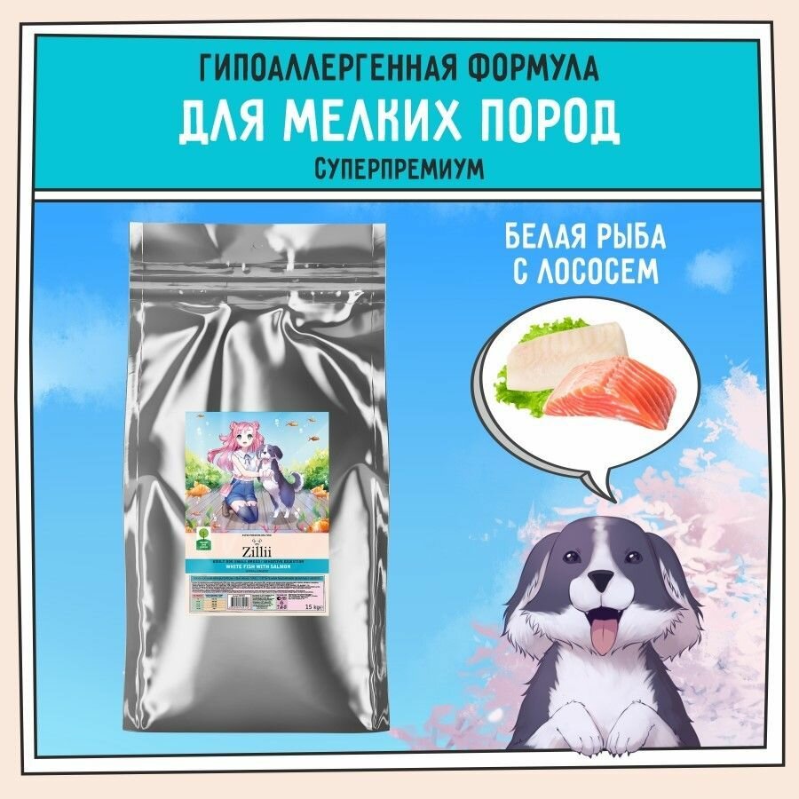 Zillii Сухой корм для взрослых собак мелких пород с чувств пищеварением Белая Рыба Лосось 5658093 15,000 кг 63981 (1 шт)