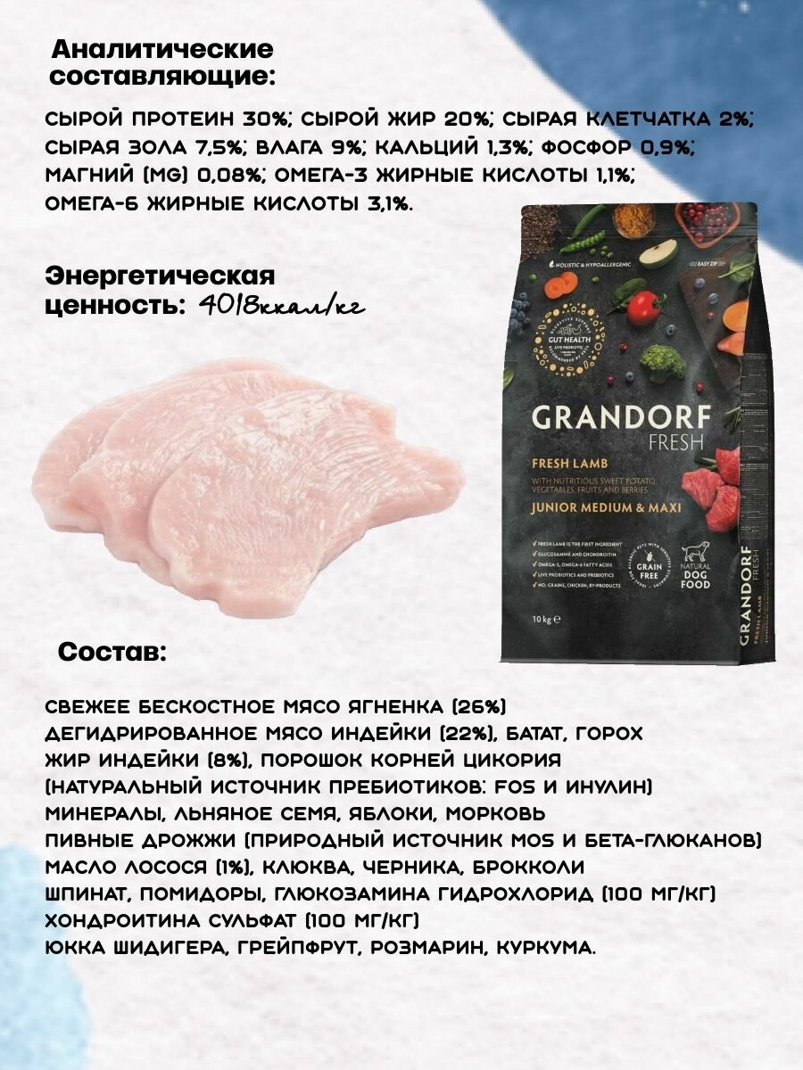 GRANDORF FRESH GF JUNIOR MED&MAXI LAMB&SWEET POTATO безз д юниор сред и круп, с ягненком и бататом, 3 кг