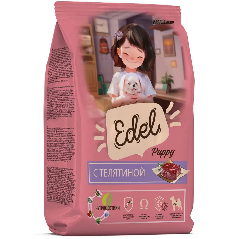 Сухой корм Edel Puppy All Breeds, полнорационный, для щенков и кормящих собак, с телятиной 1.8 кг