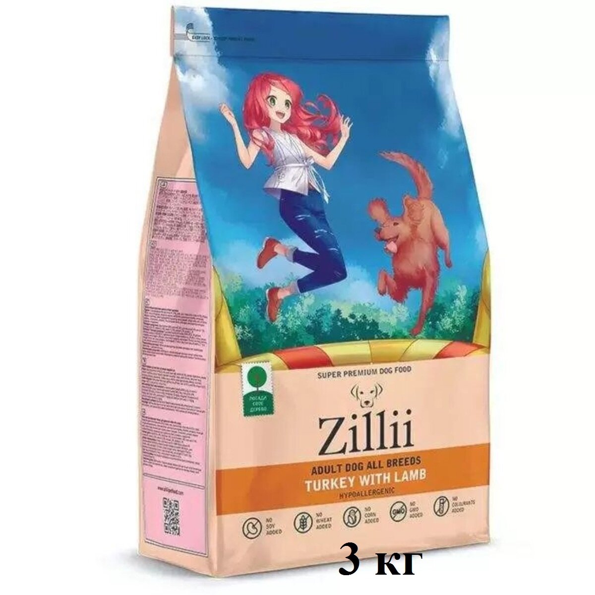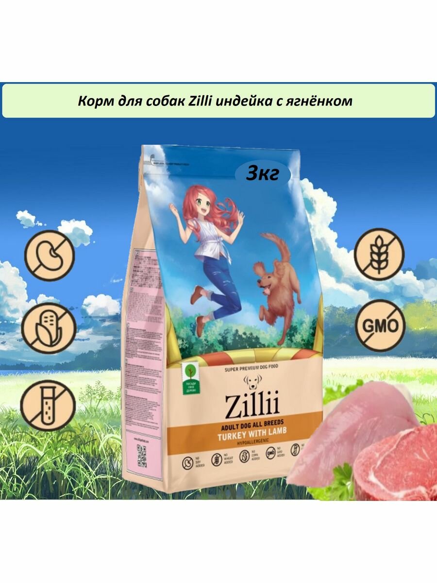 Купить ZILLII (Зилли) Adult Dog корм для взрослых собак сухой 3 кг Индейка с Ягнёнком, гипоаллергенный