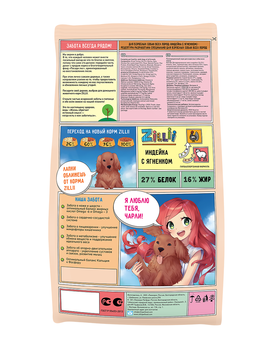 ZILLII Adult Dog Сухой корм для взрослых собак Индейка/Ягнёнок 15кг