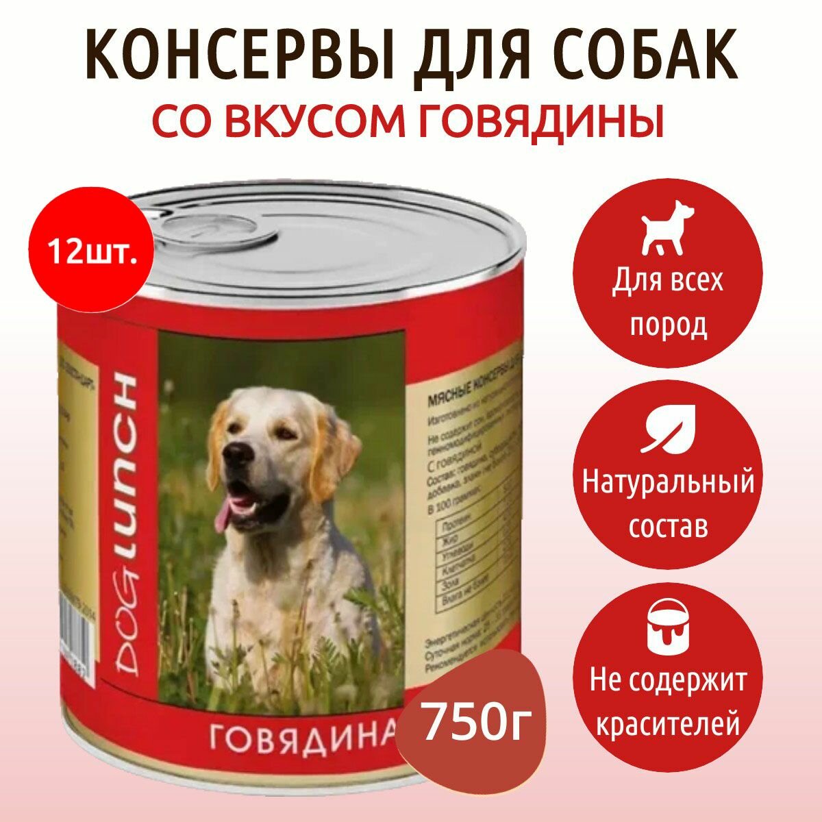 DOG LUNCH для взрослых собак с говядиной в желе (750 гр х 12 шт)