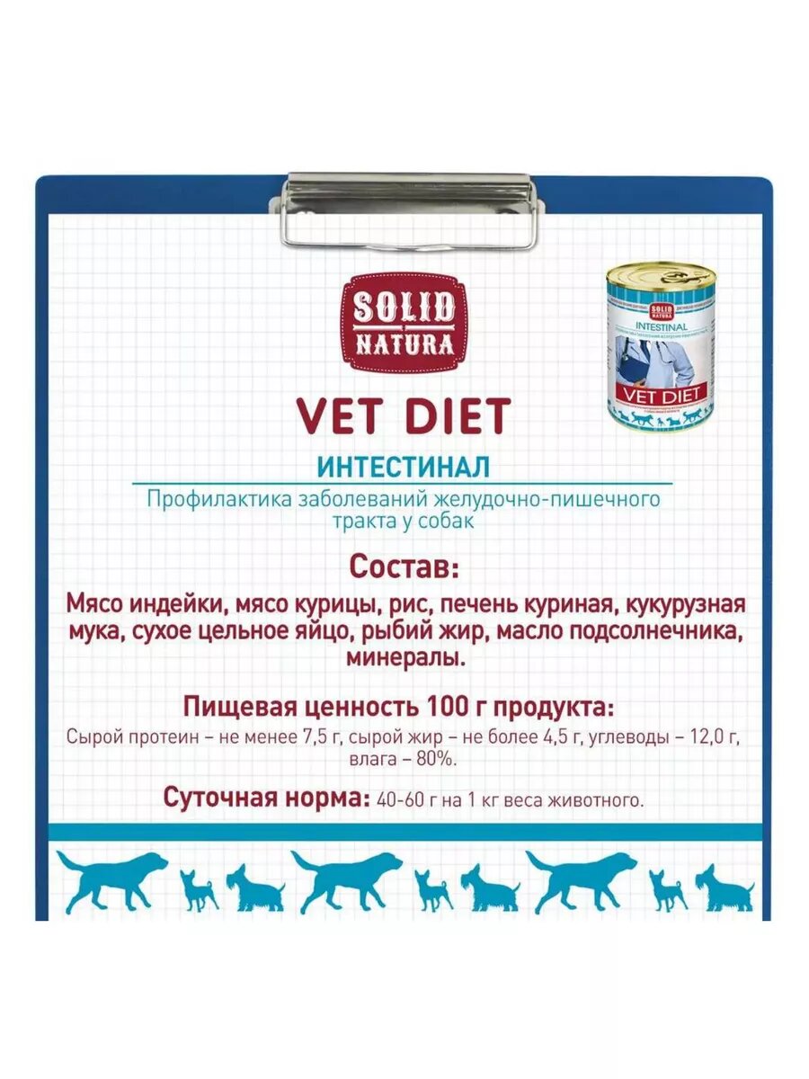 Solid Natura Vet Diet Intestinal влажный консервированный корм для собак всех возрастов при нарушениях работы желудочно-кишечного тракта, 340г., 6 шт.