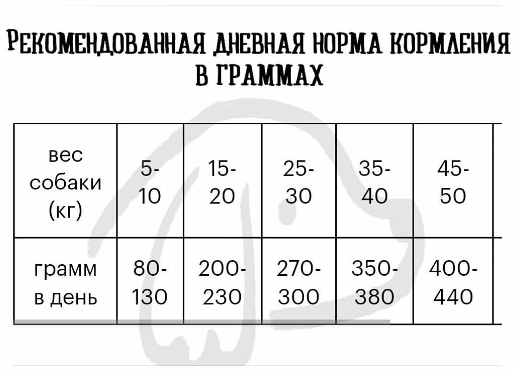 | Возраст животного | взрослые (1-6 лет) / пожилые (7+) / щенки (до 1 года) |