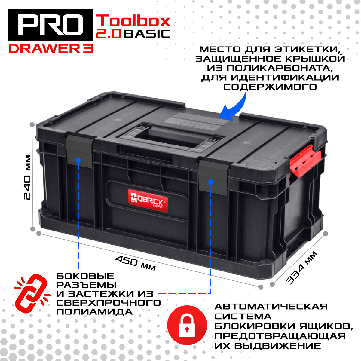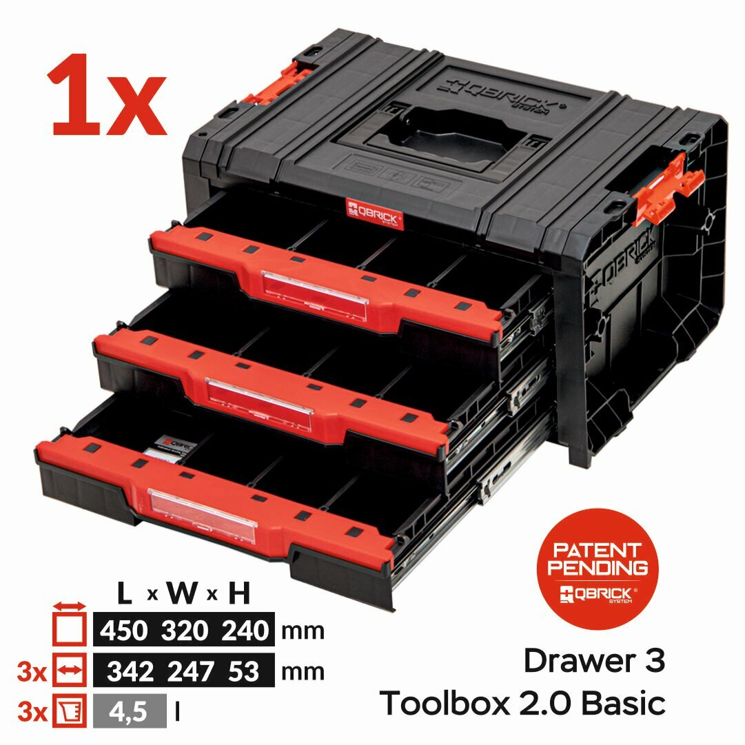 | Подробная комплектация | ящик для инструментов QBRICK SYSTEM PRO Toolbox 2.0, ящик QBRICK SYSTEM PRO Drawer 3 Toolbox Basic, ящик QBRICK SYSTEM PRO Drawer 2 Toolbox Basic QBRICK SYSTEM PRO Transport platform |