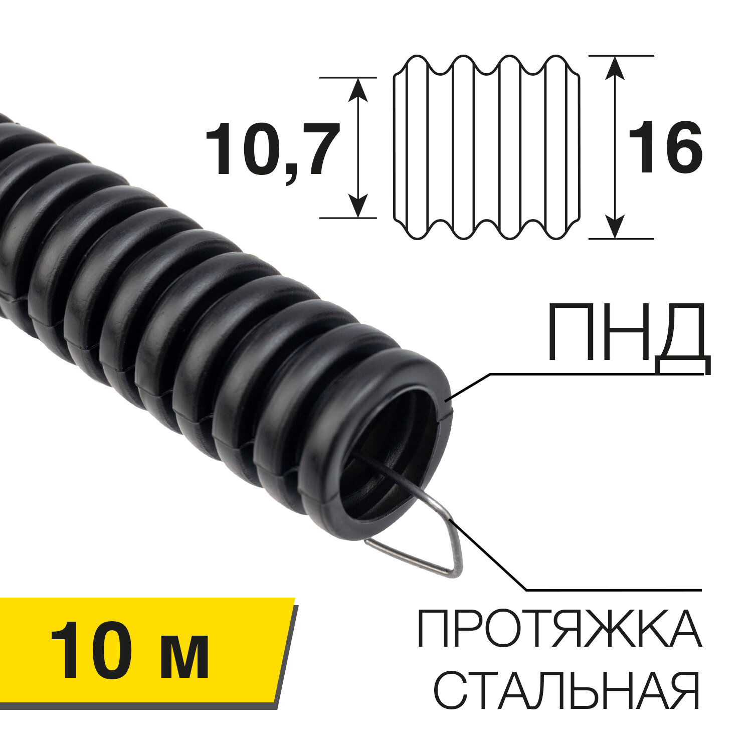 Купить Труба гофрированная Rexant из ПНД с зондом, черная, диам. 16 мм (бухта 10 м)