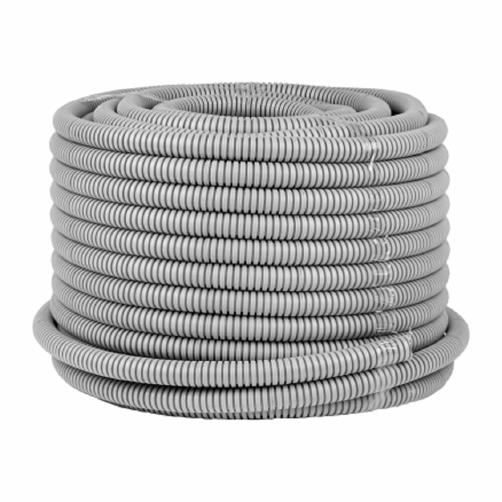 Труба гофрированная ПВХ с протяжкой d20 мм (50 метров), серая, EKF-Plast