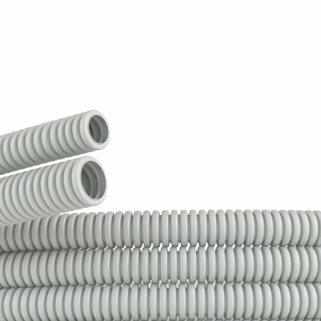DKC Труба ПВХ гибкая гофр д20мм лёгкая с протяжкой 50м цвет серый 9192050