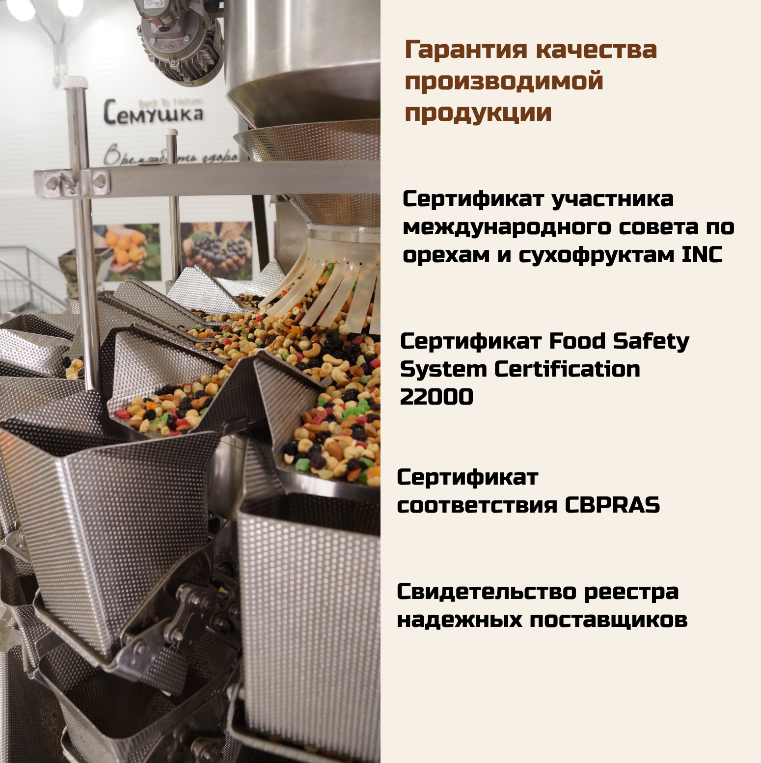 | Вид орехов | кешью / миндаль / фундук |