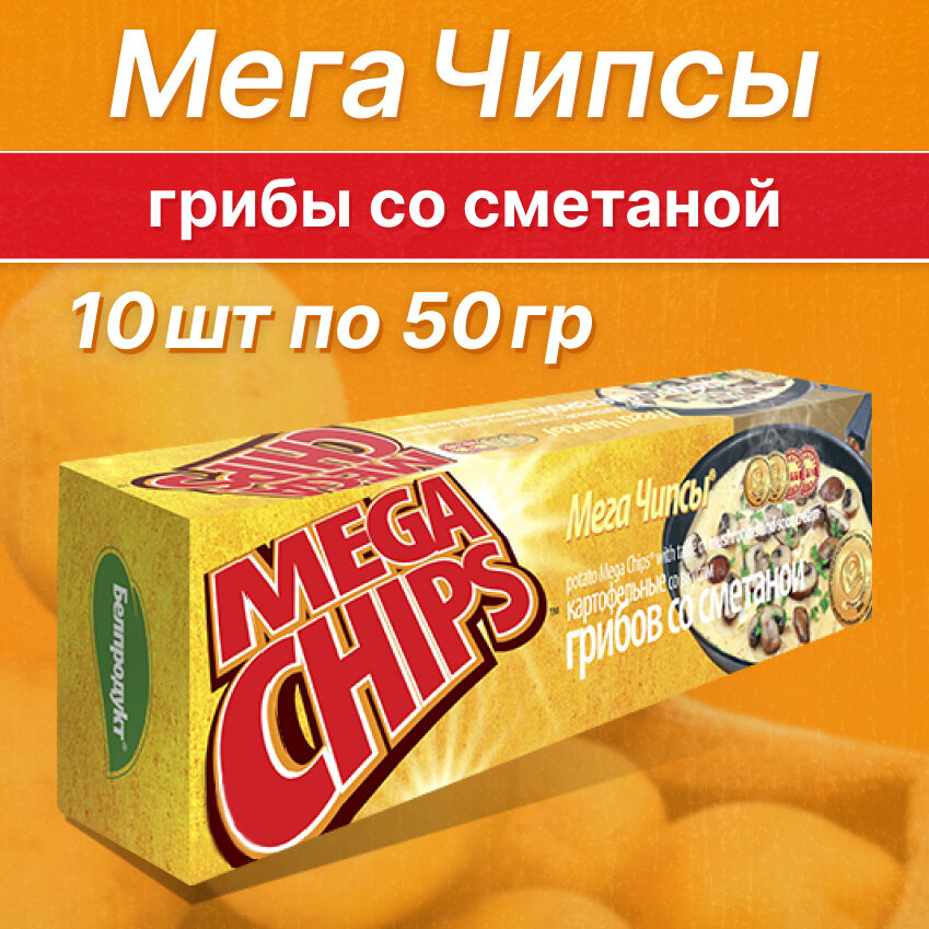 Купить Чипсы картофельные Бульба Мегачипсы со вкусом грибов и сметаны 50гр(10шт)