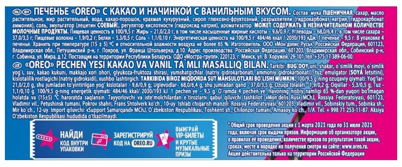 Печенье Орео с какао и ванильной начинкой 12 штук по 38 г интересное: