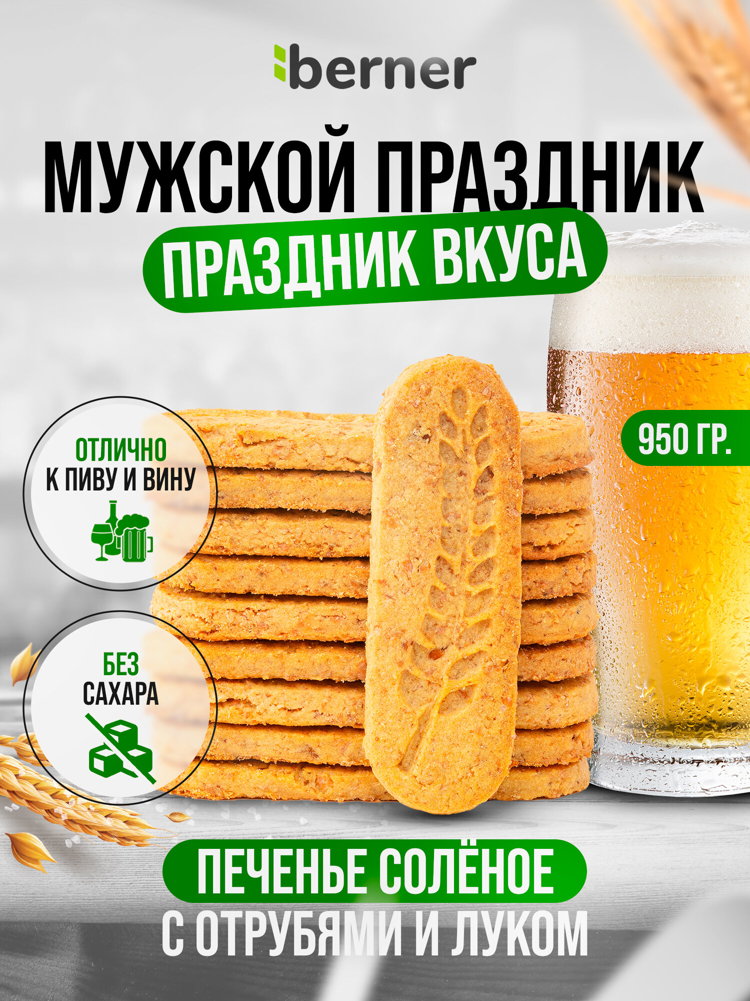 Купить Печенье Berner без сахара соленое с отрубями и луком в коробке 950 гр