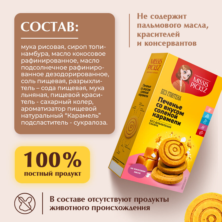 Купить Missis Pickez Печенье со вкусом Соленой карамели без добавления сахара и глютена, без лактозы Натуральное для детского питания Набор - 3 упаковки