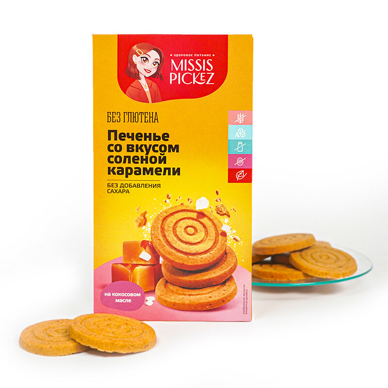 Печенье со вкусом соленой карамели без сахара без глютена "Missis Pickez" 5 пачек по 100 г