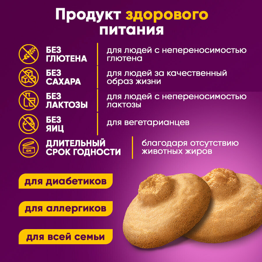 | Не содержит | ГМО / глютен / консерванты / красители / лактозу / пальмовое масло / сахар / яйца |