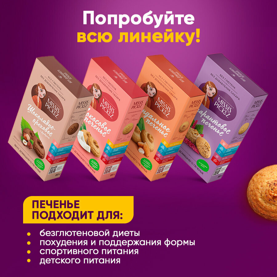 Набор печенья без сахара "Missis Pickez" Амарантовое, кокосовое, миндальное Без лактозы Без глютена Набор - 3 пачки