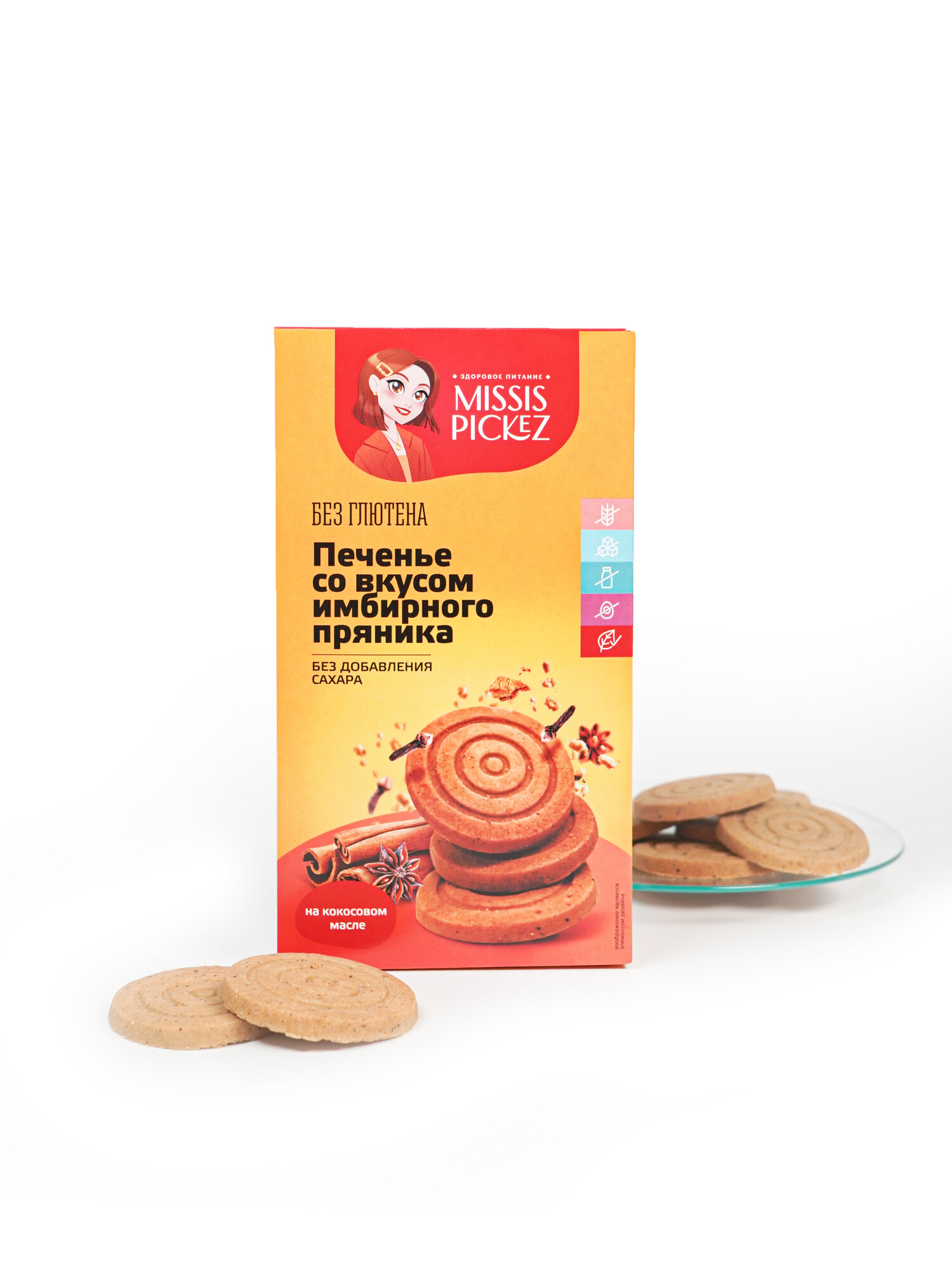 Печенье со вкусом имбирного пряника без сахара без глютена "Missis Pickez" 5 пачек по 100 г