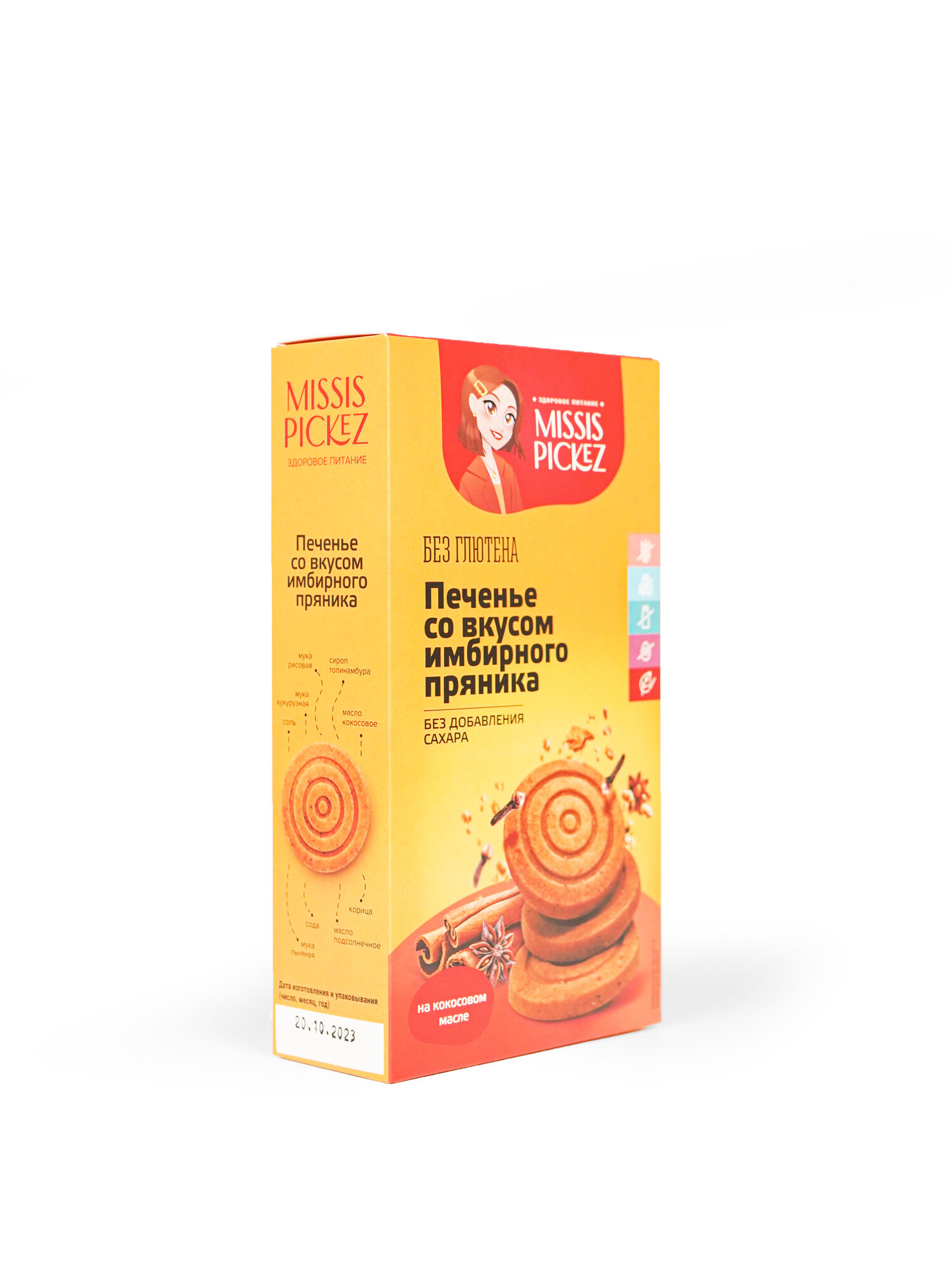 Купить Missis Pickez Печенье со вкусом Имбирного пряника без добавления сахара и глютена, без лактозы Натуральное для детского питания Набор - 14 пачек