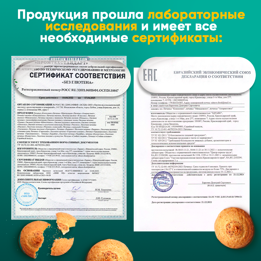 | Вид | злаковое / кокосовое / кукурузное / кунжутное / курабье / миндальное / песочное |
