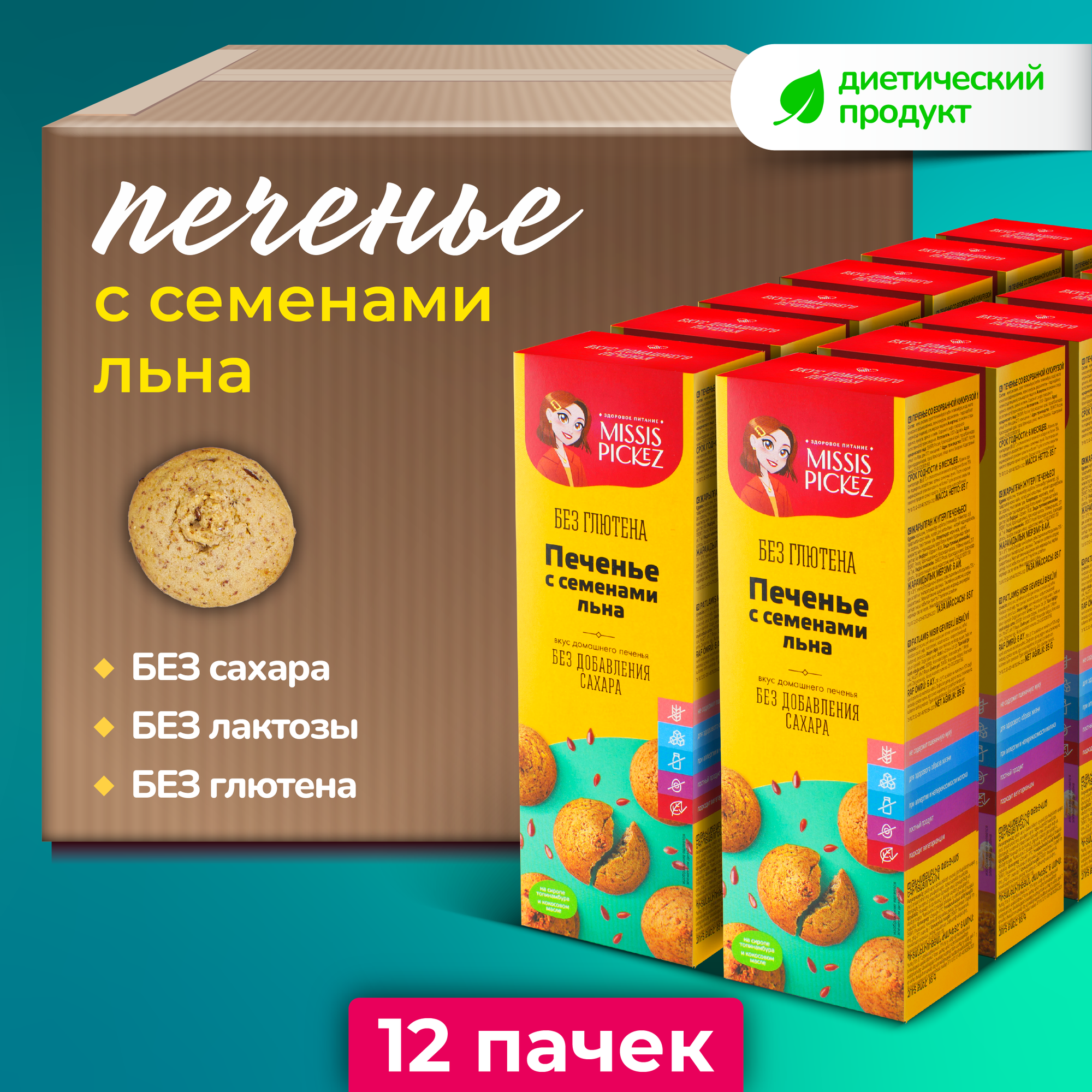 Купить Missis Pickez Печенье с Семенами льна без добавления сахара и глютена, без лактозы Натуральное для детского питания Набор - 12 пачек