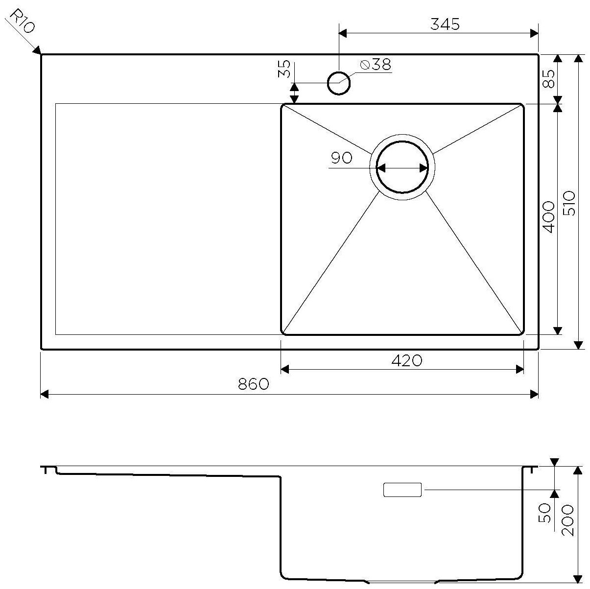Кухонная мойка OMOIKIRI Akisame 86-IN-R 86х51см нерж.сталь/нержавеющая сталь