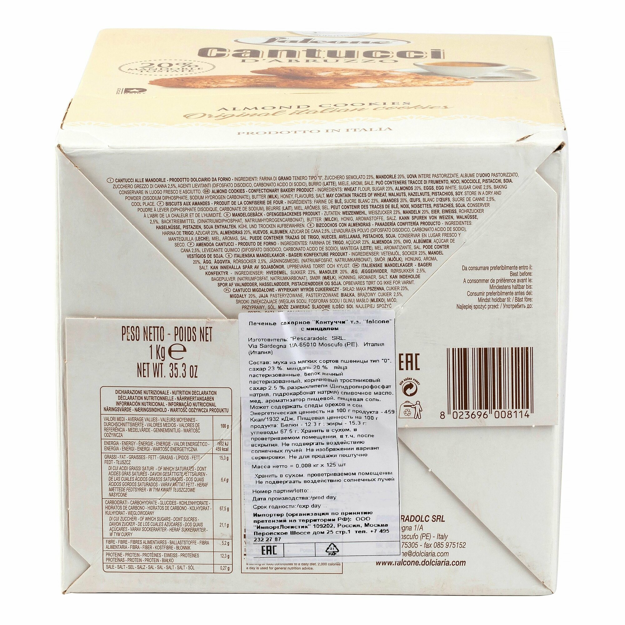 Печенья Cantucci Falcone с миндалем 125 шт, 1000г интересное: