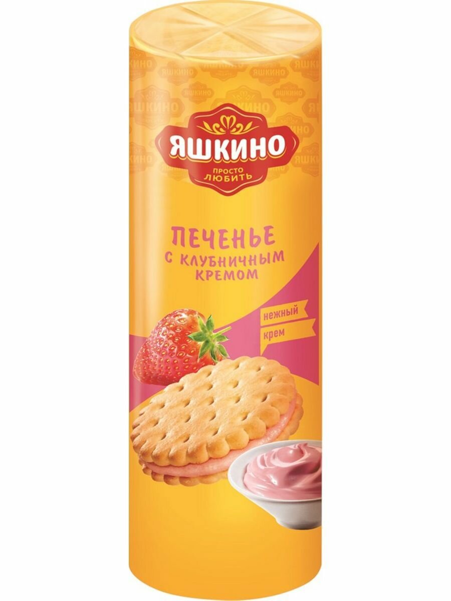 Яшкино Печенье затяжное с клубничным кремом, 190 гр.