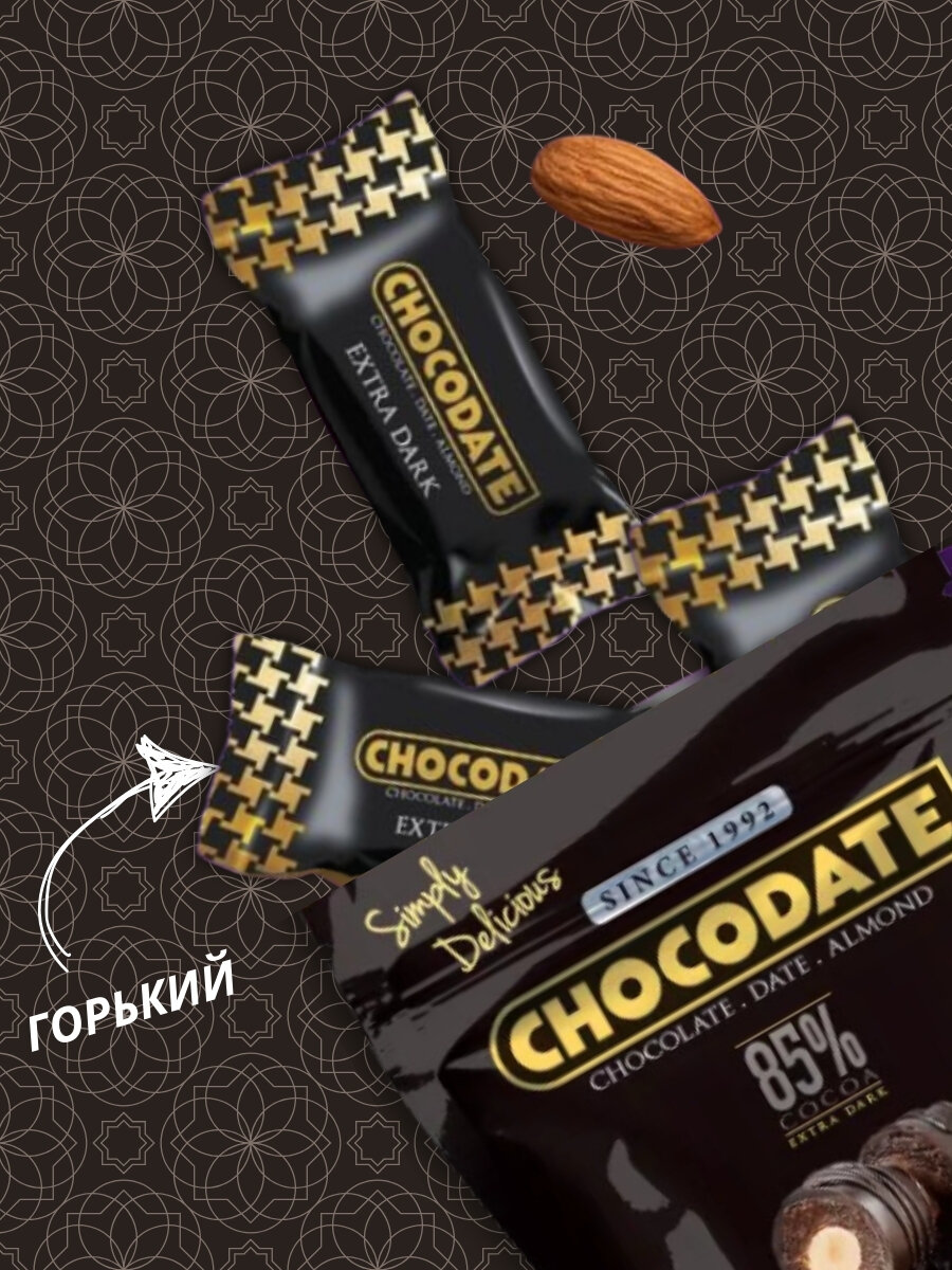 СохранитьКонфеты "Финики с миндалём в горьком шоколаде 85%" от бренда Chocodate 100г интересное: