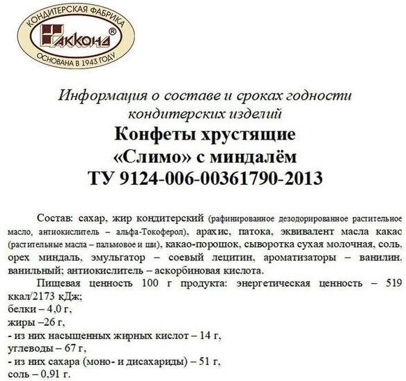 Конфеты Слимо хрустящие с миндалем 500 гр. интересное: