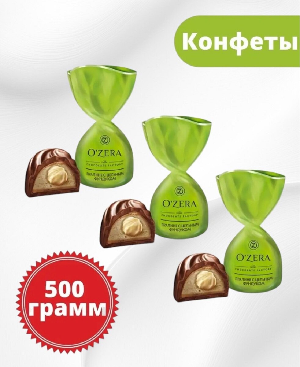 Ozera / Шоколадные конфеты "O"Zera", пралине с цельным фундуком, 0,5кг