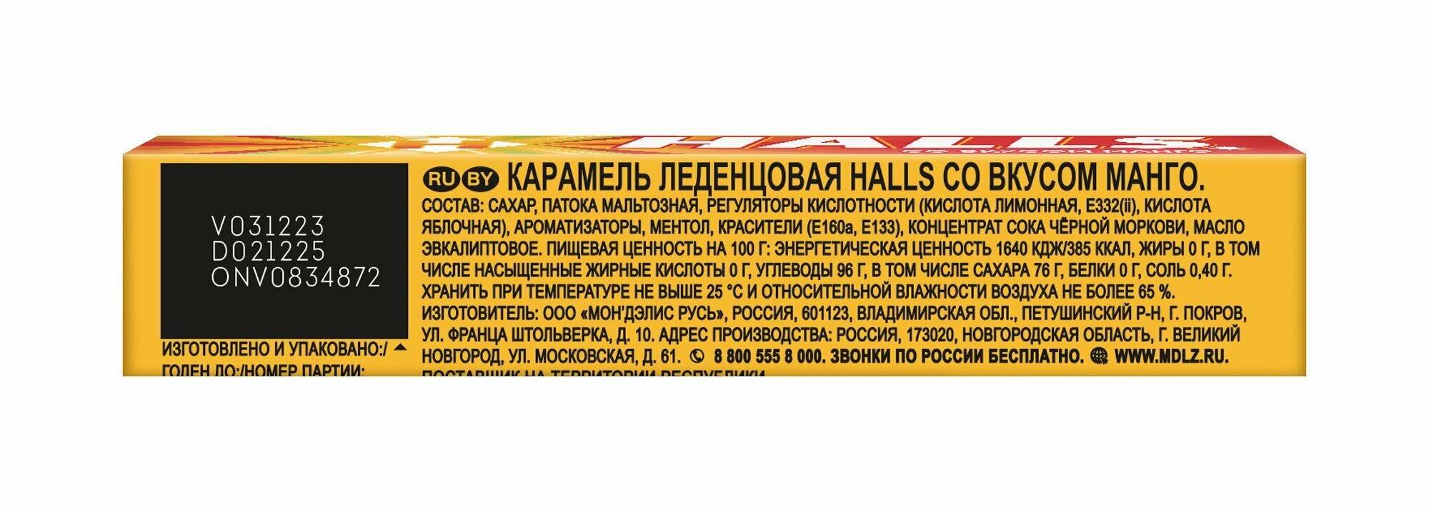Карамель леденцовая Halls со вкусом манго 12 шт по 25г интересное: