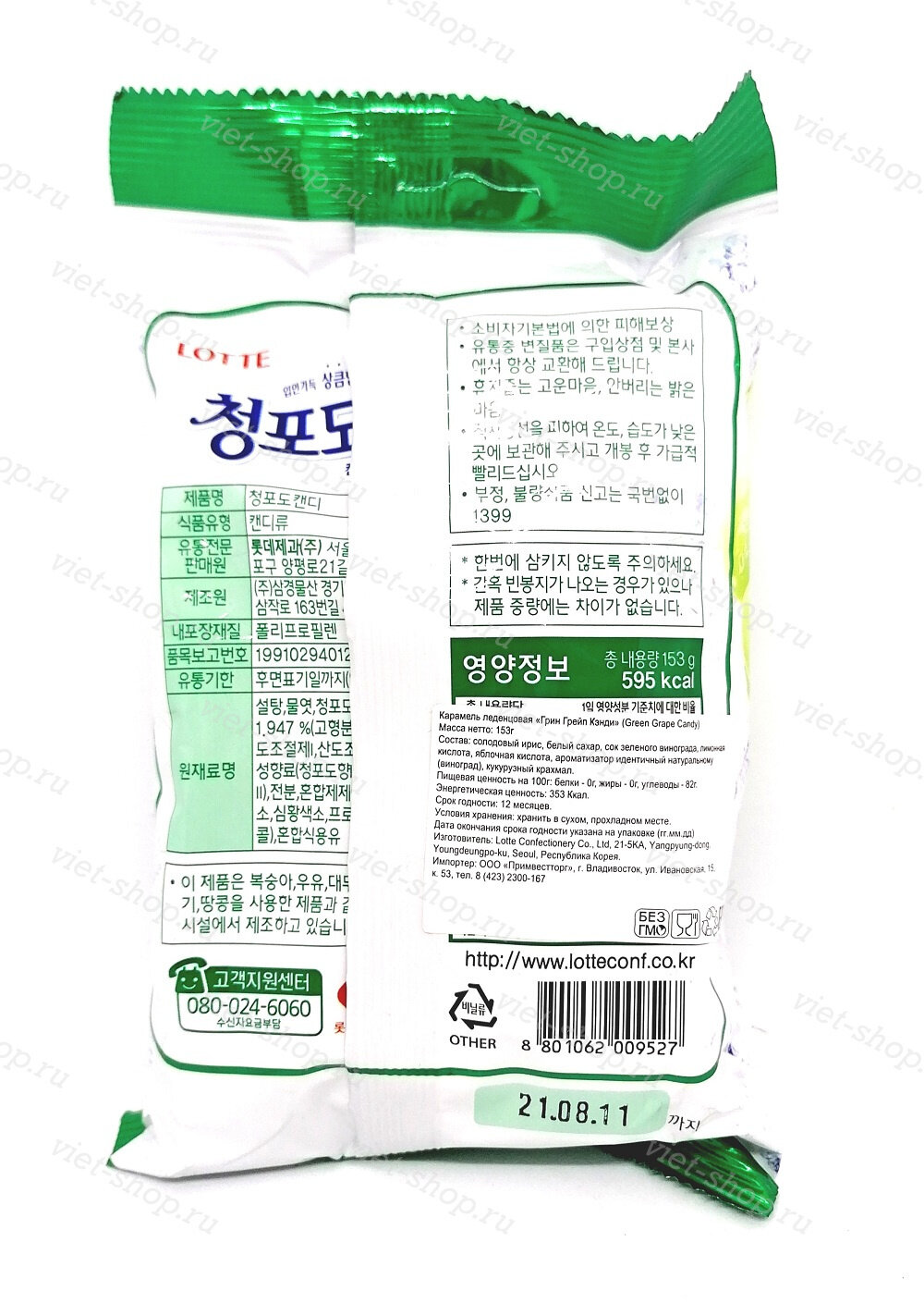 Карамель с соком зеленого винограда Lotte Green Grape 153 г