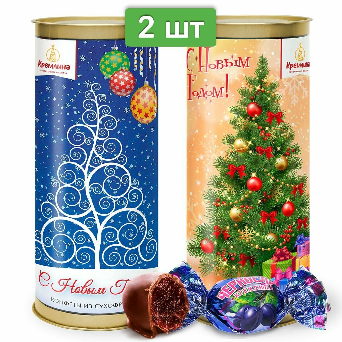 Купить Набор конфет новогодних, подарочных Чернослив шоколадный в подарочных тубах " Елка Золотая" , "Елка Синяя", спайка 2 тубы по 250 грамм