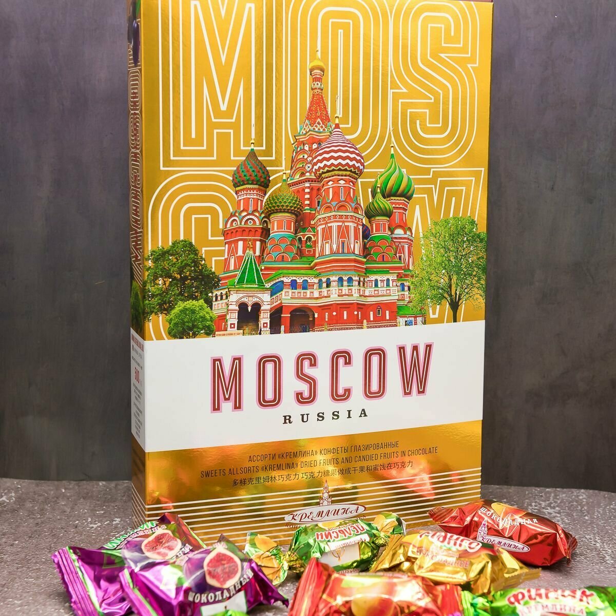 Купить Подарок новогодний, набор конфет подарочных Фрукты и Цукаты в коробке "Москва Золотая", 500 грамм
