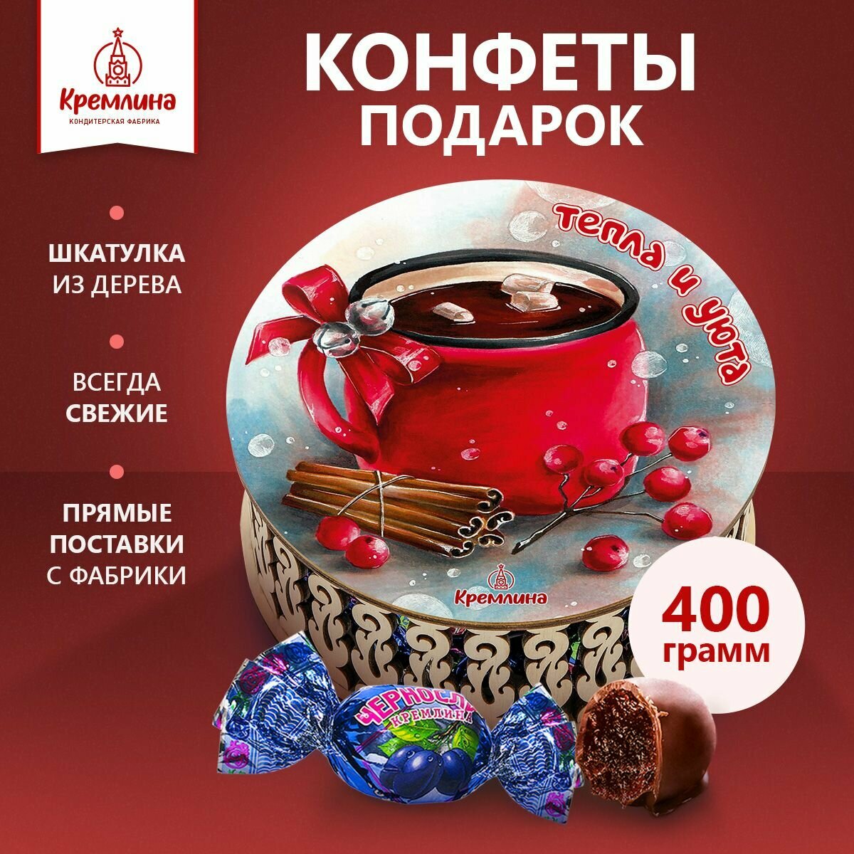 Набор конфет подарочных с вишневой начинкой Кремлинка Вишенка в резной шкатулке "От всей души", 150 грамм