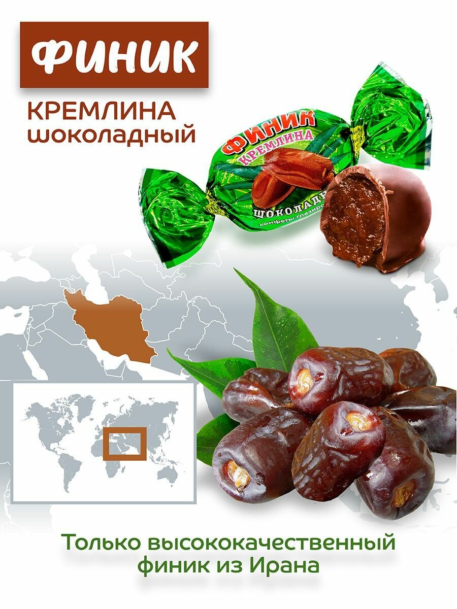 Конфеты подарочные на новый год 2025 Ассорти Кремлина фрукты шоколадные: Манго, Груша, Апельсин, Финик и Инжир в коробке подарочной "С новым годом!" 500 г