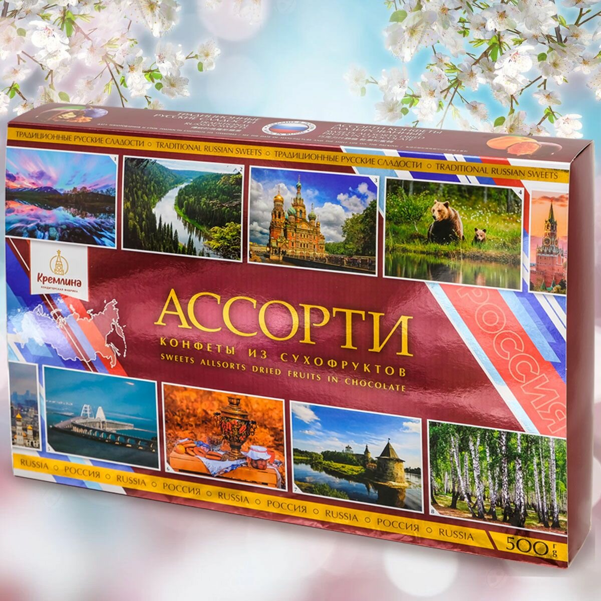 Набор конфет подарочных Фрукты и Цукаты в подарочной коробке"широка страна МОЯ родная", 500 грамм