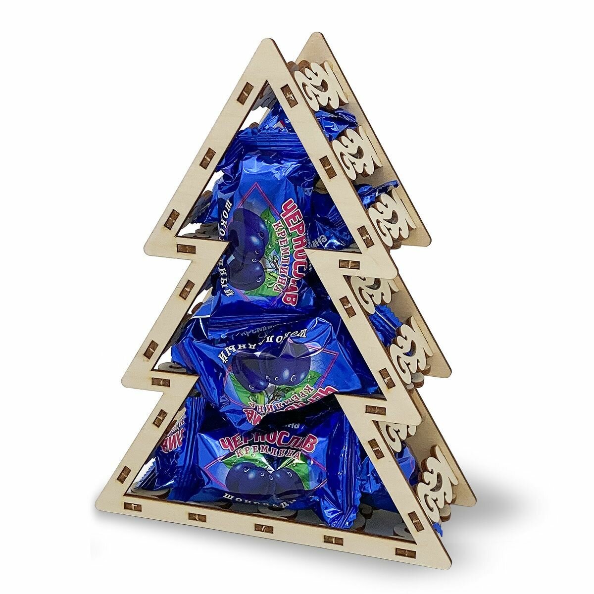 Купить Конфеты подарочные шоколадные из чернослива в резной шкатулке "Елка Золотая", 300гр