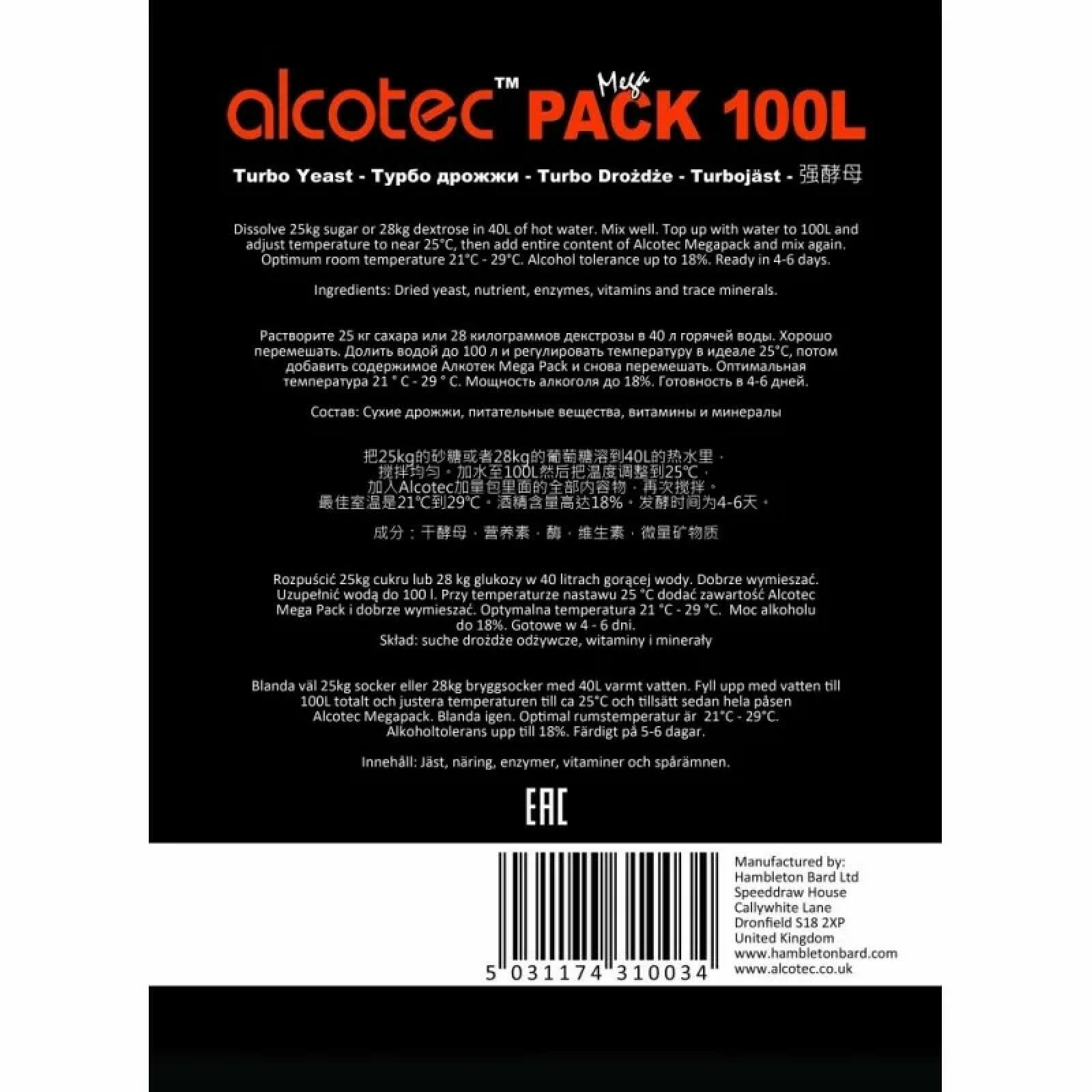 Дрожжи спиртовые Alcotec MegaPack 100L