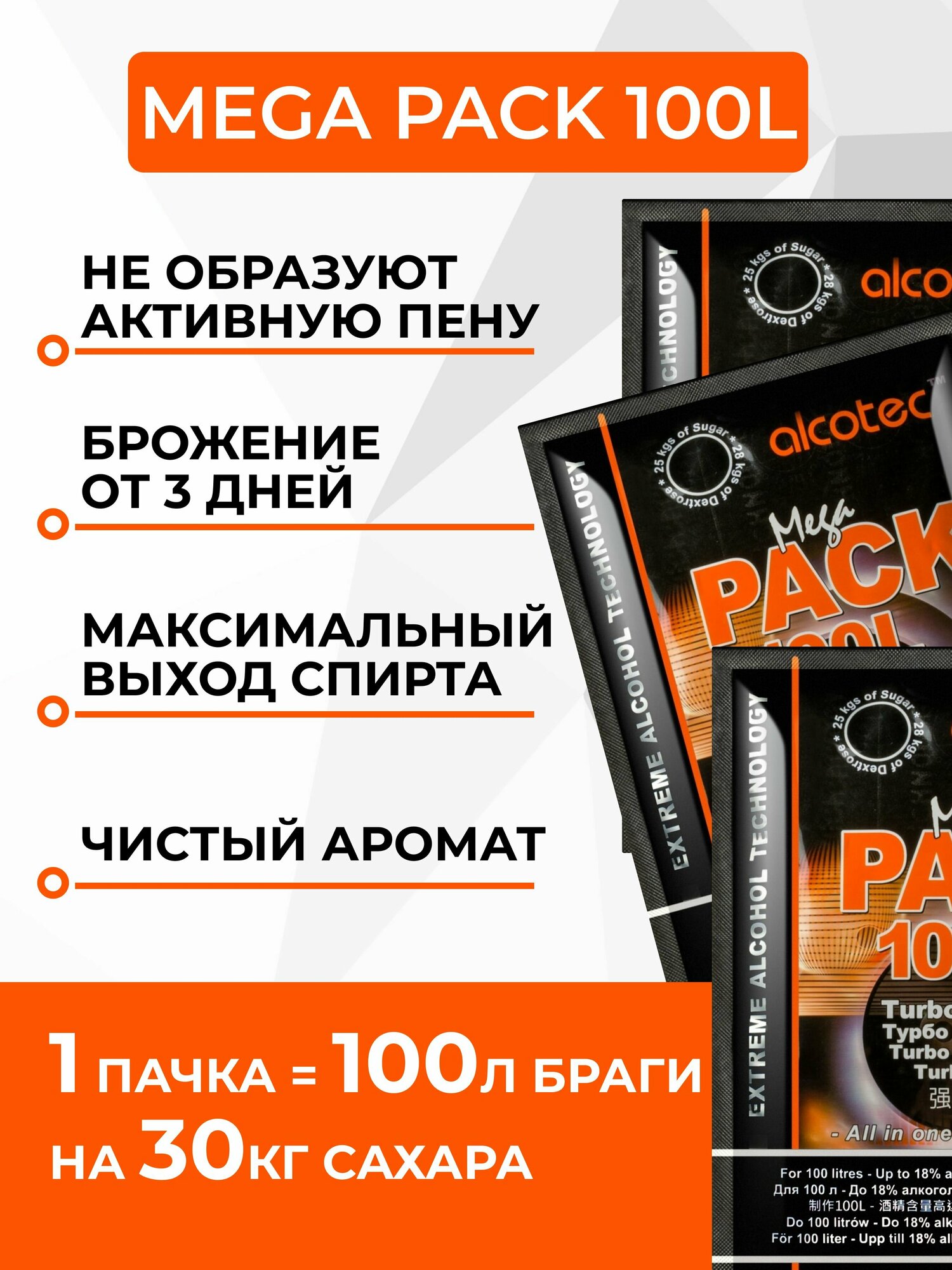 Купить Дрожжи спиртовые Alcotec MegaPack на 100 литров 360г, 3 шт.