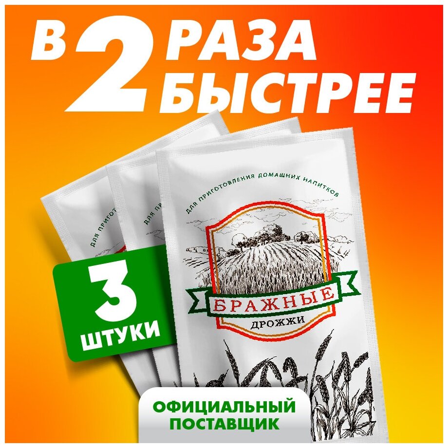 Активные сухие спиртовые дрожжи бражные 3 шт. по 100 гр. / Для самогона, браги и домашних напитков