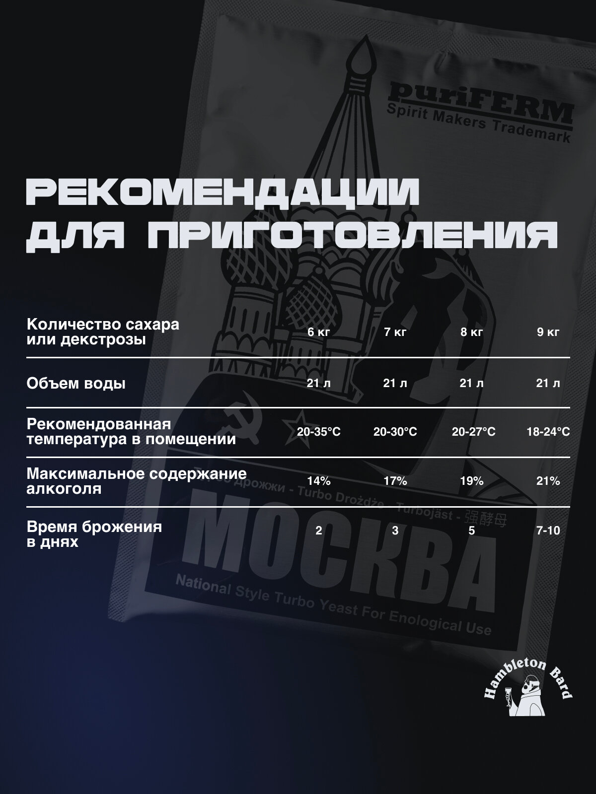 Спиртовые турбо-дрожжи Puriferm Москва (4 пачки)