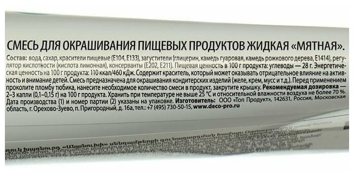 Ниже Вы можете прочитать отзывы на Пищевой краситель Top Decor гелевый, мятный 3285, 100 г, ознакомится с подробными характеристиками, посмотреть интересные обзоры и фотографии на Пищевой краситель Top Decor гелевый, мятный 3285, 100 г.