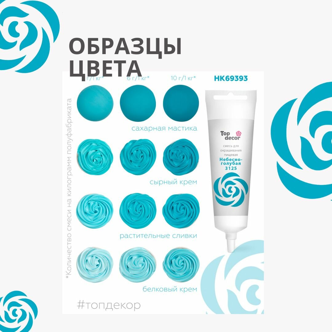 Купить Пищевой краситель Top Decor гелевый, небесно-голубой 3125, 100 г