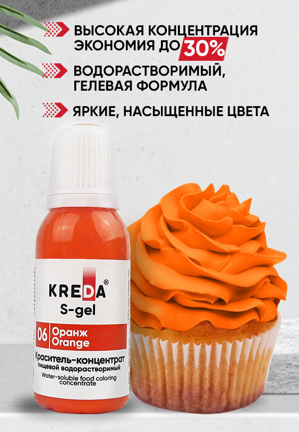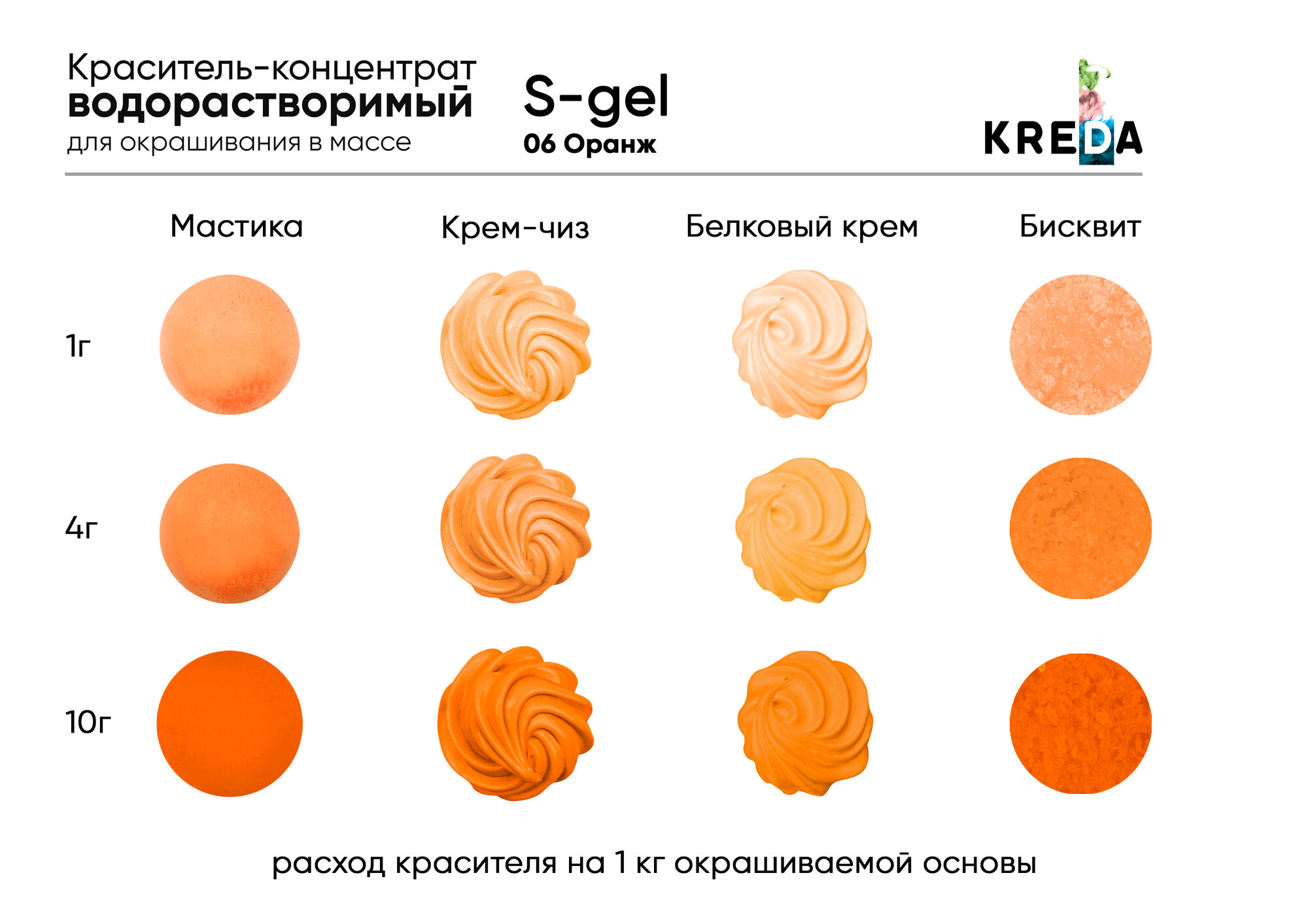 Краситель пищевой концентрат гелевый Kreda S-gel оранж №06, 10 мл