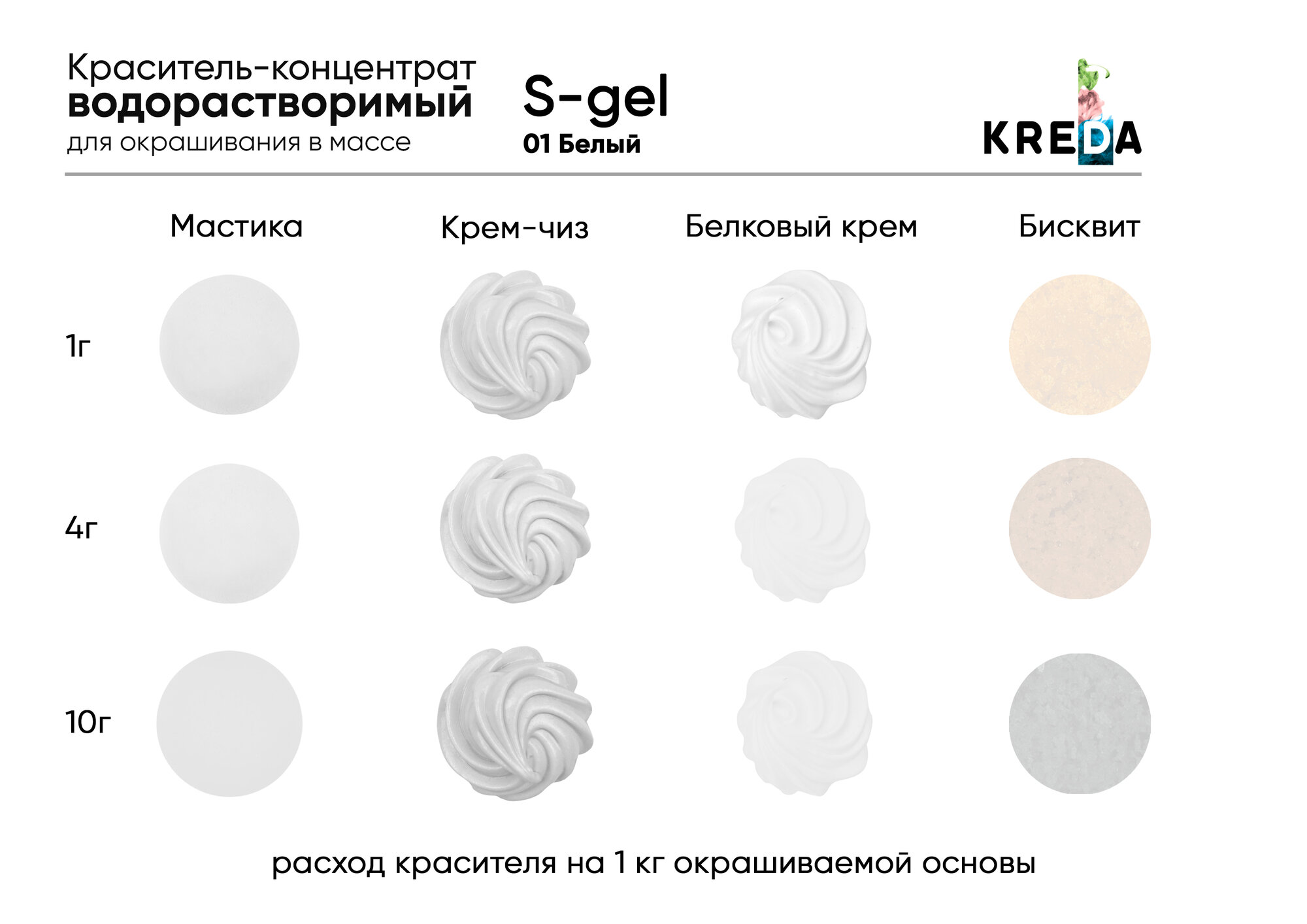 Краситель-концентрат креда (KREDA) S-gel белый №01 гелевый пищевой, 20мл