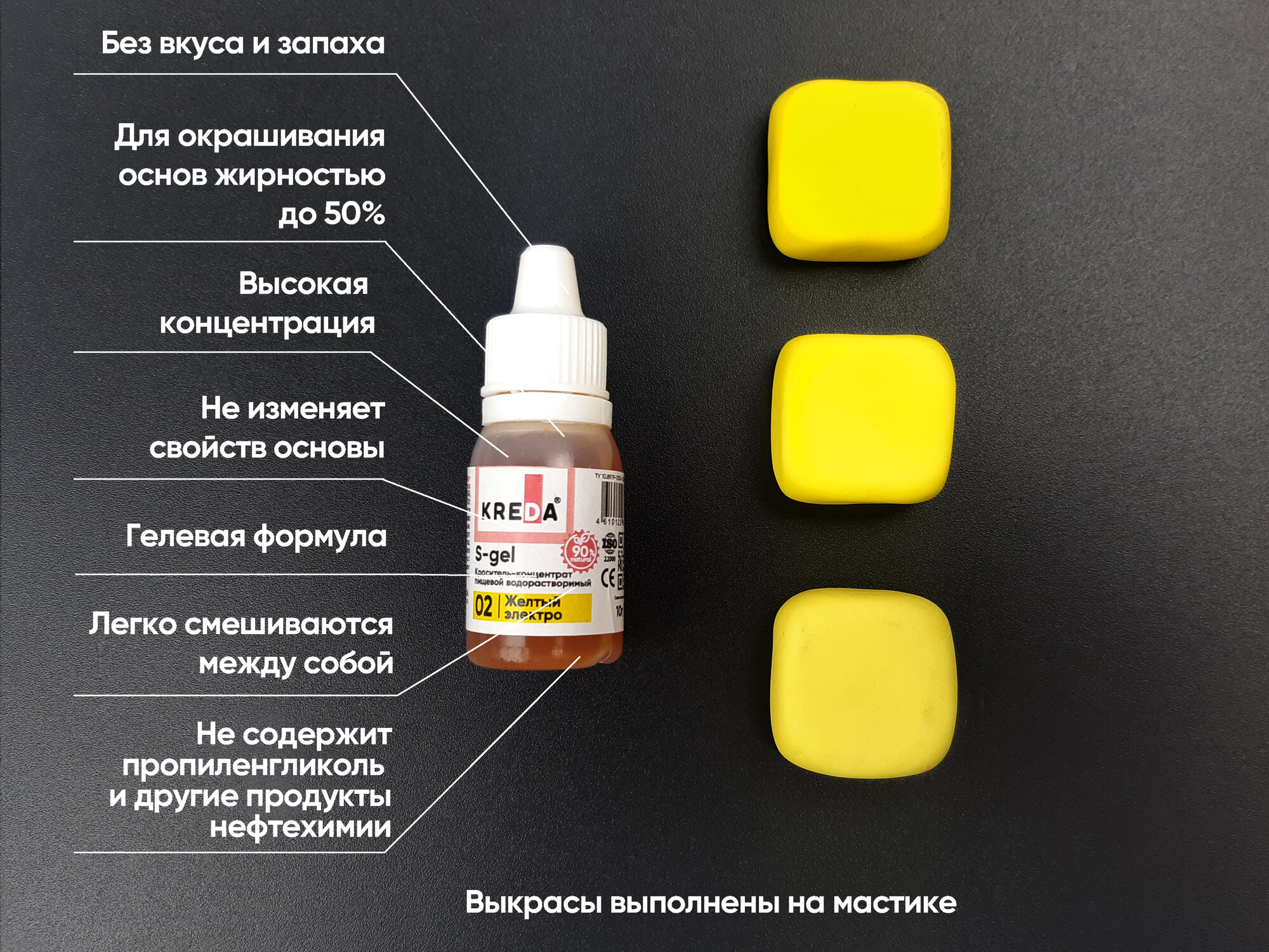 Ниже Вы можете прочитать отзывы на Пищевой краситель Kreda S-gel, желтый электро, 10 мл, гелевый, водорастворимый, ознакомится с подробными характеристиками, посмотреть интересные обзоры и фотографии на Пищевой краситель Kreda S-gel, желтый электро, 10 мл, гелевый, водорастворимый.